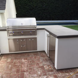 New pergola with heaters and fans. New outdoor BBQ island.
